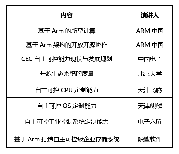 ARM中國、北京大學(xué)、天津飛騰、天津麒麟、電子六所、北京鯨鯊軟件科技有限公司分別做了專題演講。