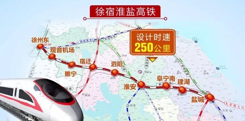 徐宿淮鹽城際鐵路:是江蘇省東西向高速鐵路,是江蘇腹地最重要的鐵路大動脈之一,有江蘇鐵路金腰帶之稱。徐宿淮鹽城際鐵路全長約314公里,全程設(shè)計行車速度為每小時250km。途經(jīng)徐州市、睢寧縣,宿遷市、泗陽縣,淮安市,阜寧縣、建湖縣、鹽城市等縣市,全線共設(shè)11座車站。