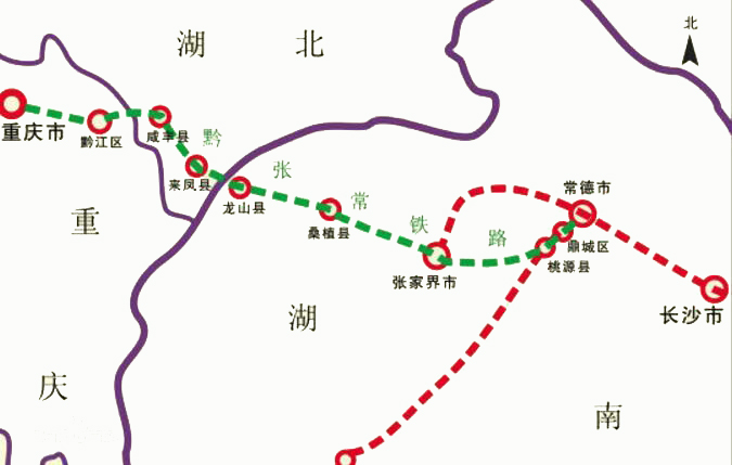 黔張常鐵路:是渝長廈快速鐵路的一段,黔張常鐵路西起重慶市黔江站,途經(jīng)湖北咸豐縣、來鳳縣,湖南龍山縣、桑植縣、張家界市、桃源縣,東接石長鐵路常德站,全線共設(shè)了16座車站,是以客為主、客貨混線,設(shè)計時速200km的國家I級雙線鐵路,線路全長336.3公里。