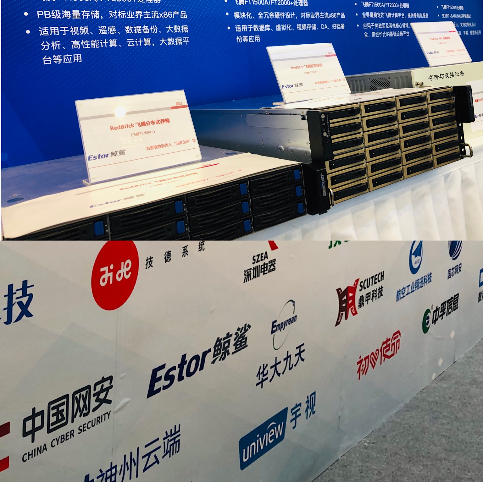 鯨鯊軟件作為飛騰的存儲(chǔ)設(shè)備合作伙伴在現(xiàn)場(chǎng)同大家進(jìn)行產(chǎn)品展示和問(wèn)題交流,并在當(dāng)天的高新電子分論壇作為代表廠商做主題演講。此次我們展示了采用飛騰FT2000+處理器的RedBrick飛騰分布式存儲(chǔ)、RedStor飛騰雙控存儲(chǔ)以及飛騰FT1500A處理器的RedStor VPX加固存儲(chǔ)。同時(shí)還呈現(xiàn)了在視頻監(jiān)控、指控系統(tǒng)、衛(wèi)星存儲(chǔ)、OA系統(tǒng)、數(shù)據(jù)庫(kù)應(yīng)用、虛擬化應(yīng)用等黨、政、軍領(lǐng)域的案例成果。