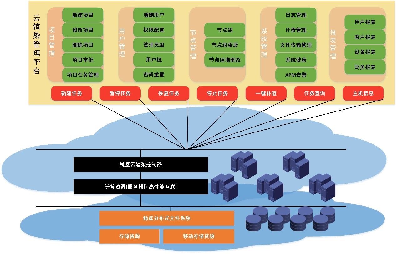 鯨鯊云渲染模式與常規(guī)的云計(jì)算類似,即將3D程序放在遠(yuǎn)程的服務(wù)器中渲染,用戶終端通過Web軟件并借助高速互聯(lián)網(wǎng)接入訪問資源,指令從用戶終端中發(fā)出,服務(wù)器根據(jù)指令執(zhí)行對(duì)應(yīng)的渲染任務(wù),而渲染結(jié)果畫面則被傳送回用戶終端中加以顯示,服務(wù)器自動(dòng)計(jì)費(fèi)、計(jì)時(shí)和問題干預(yù)和告警。無(wú)需人工干預(yù)即完成大型動(dòng)畫的渲染或高清效果圖的渲染工作,還可根據(jù)用戶需求接入公有云。